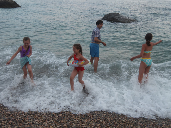 Два следующих дня провели на пляже.. В основном купались вечером, когда вода чуть согреется. Дети быстро привыкли к прохладной воде..