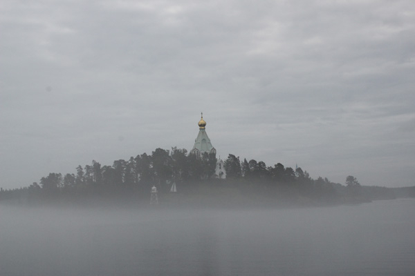 Плывем на остров Валаам... Сквозь туман виднелись часовенки..