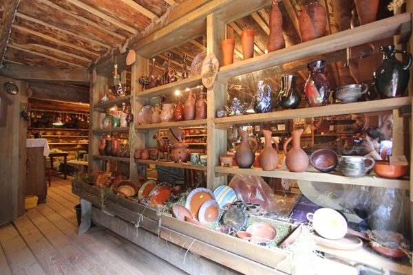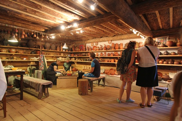 В деревне можно познакомиться с народными промыслами, такими как роспись и резьба по дереву, ткацкое и гончарное дело, кружевоплетение и пр.