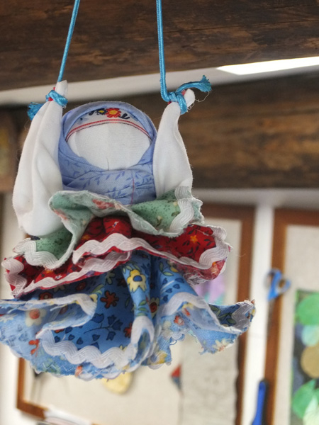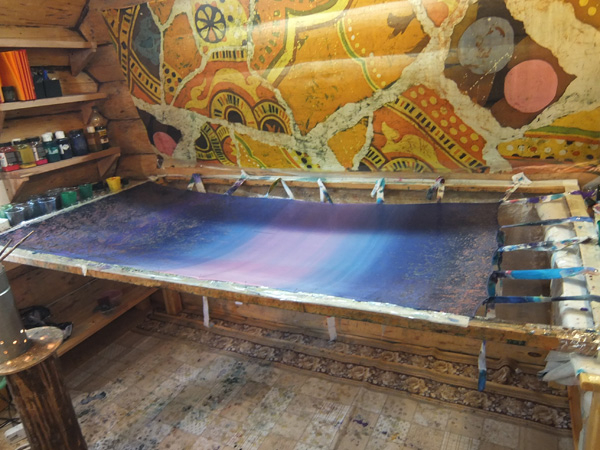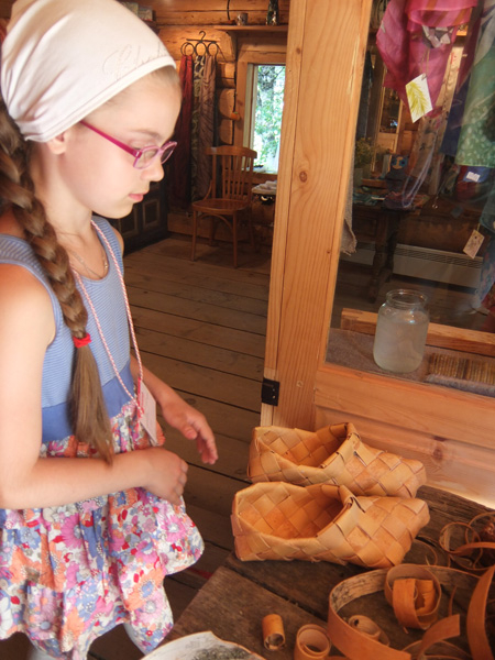 Мастерская по батику плавно перетекает в мастерскую по плетению из бересты ..