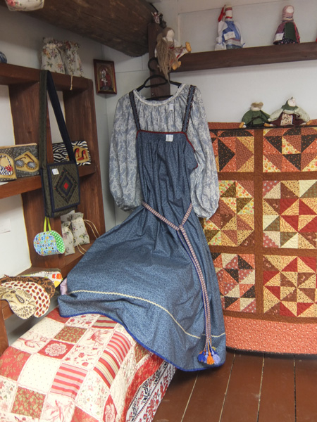 Мастерица рассказала, что раньше барышни не носили бюстгалтера и поэтому в сарафане предусматривался поясок под грудью. Одеваешь широкую рубаху, сверху сарафан, подпоясываешься пояском и грудь "держится"! Эффект пуш-ап обеспечен!