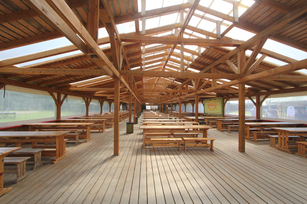 В такой столовой на свежем воздухе нас кормили.. Шашлычки на выбор. Да под выступления местной группы!
