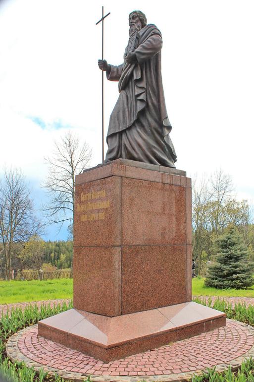 Неподалеку стоит памятник апостолу Андрею Первозванному. Церемония открытия состоялась 10 июля 2014 года. Памятник изготовлен известным российским скульптором Андреем Клыковым в мастерской народного художника России Вячеслава Клыкова. Памятник Апостолу Андрею Первозванному устанавливается на острове Валаам не случайно. По преданию, во времена распространения христианства апостол Андрей Первозванный, пройдя Днепр и Волхов, вошёл в «бурные и вращающиеся воды озера Нево» и установил на «горах Валаамских» каменный крест.