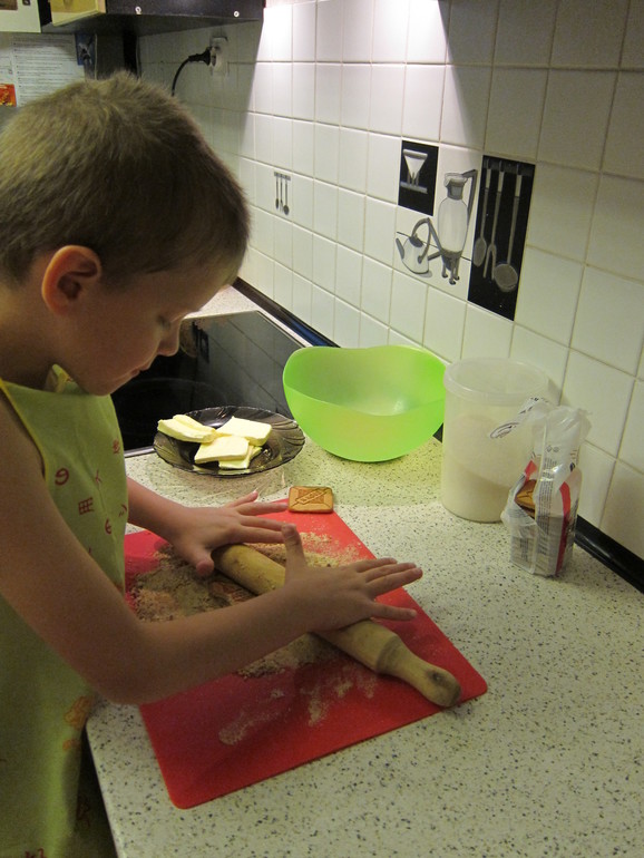 Сироп готовлю я, остальное Данька. Печенье Данька крошит скалкой.