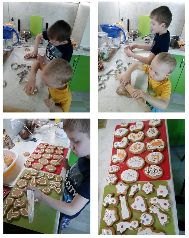 Я не знала, что они так поднимаются и расширяются. На первом противне у нас половина фигурок слиплась друг с другом))