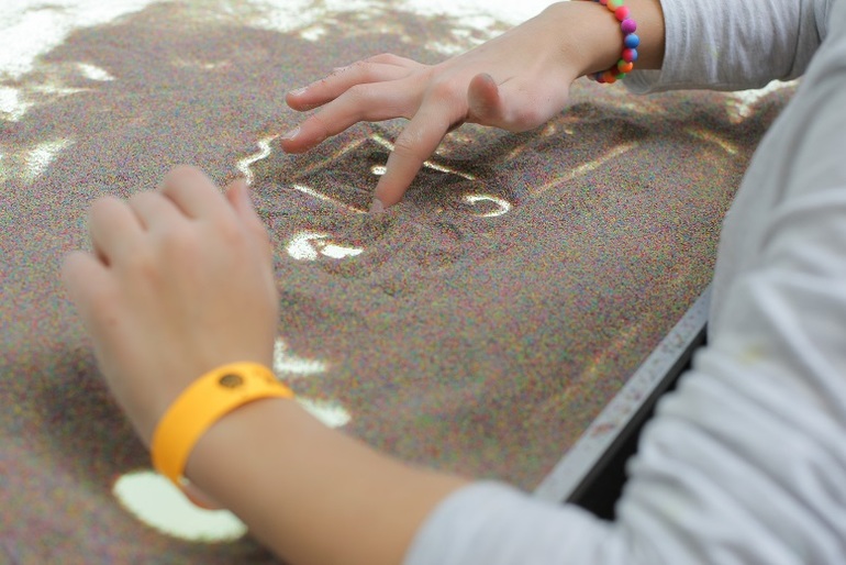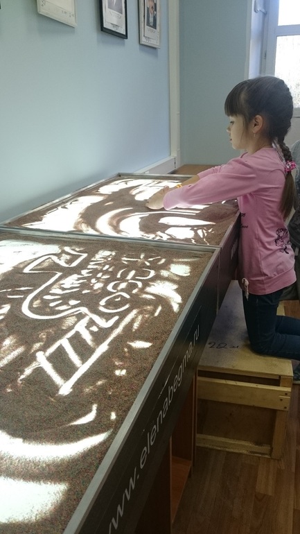 Мы как-то были в студии рисования песком (племянница там д\р отмечала), там столы были подключены к ноутбуку. Один ребенок рисует, а другие видят это на экране (большом, на стене). Здорово было - такое коллективное рисование (у каждого был свой стол).
