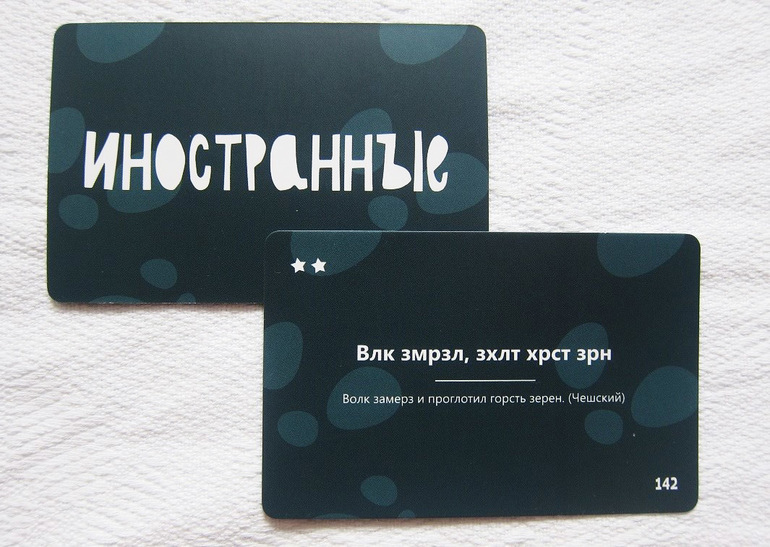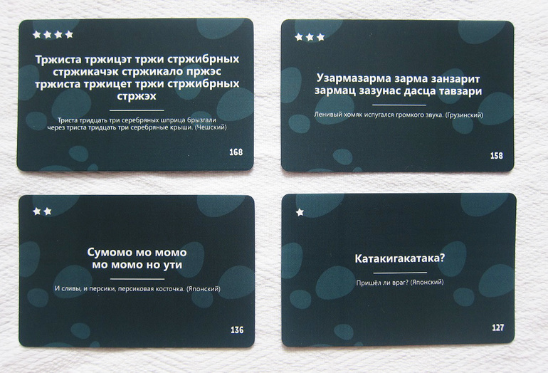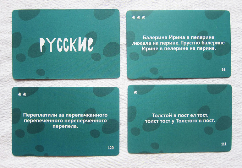 И на десерт самые родные карты - «Русские», на которых авторы разместили скороговорки. Все забавные и ни одной знакомой!