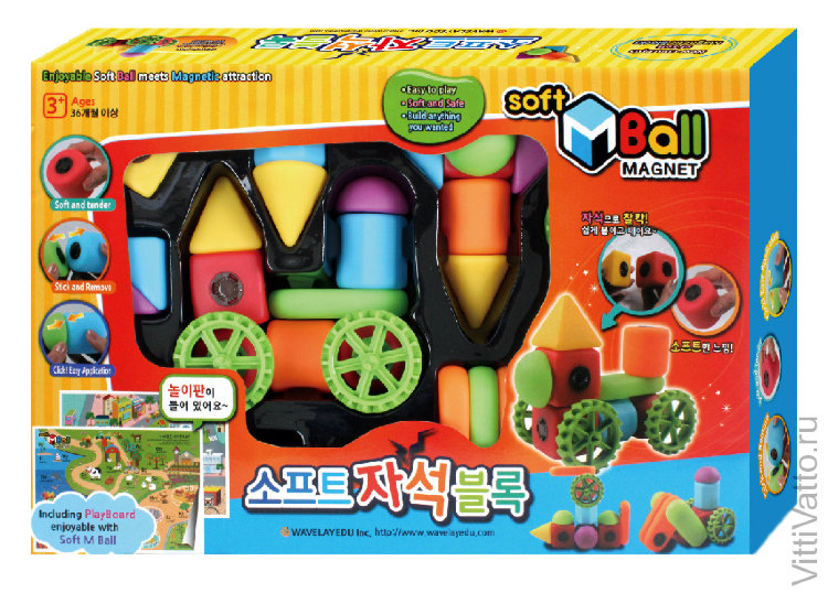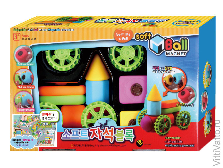 Этот абсолютно новый тип конструктора совсем не похож на остальные, его детали - это мягкие «палочки» с алюминиевым стержнем, заламинированным в пластик для безопасности , которые можно сгибать-разгибать, закручивать в разные формы. Их дополняют колёса, коннекторы, картинки и уникальные деревянные детали. Такой состав набора позволяет открыть еще большие просторы для развития и творчества детей, ведь они не ограничены классическими деталями, подгоняемыми друг под друга. Конструкторы Waveplay представлены огромным разнообразием наборов от 30 до 500 деталей. Поэтому каждый сможет найти то, что ему по нраву. SoftMBall Еще один уникальный тип конструктора. Он магнитный, но совсем не типичный. Его детали выполнены из мягкого резинового пластика, который так же используется в медицине. Приятные на ощупь, похожие на детский мячик детали, легко соединяются между собой благодаря магнитным модулям, встроенных в них. А с помощью дополнительных коннекторов, присутствующих в наборе, Soft M Ball легко совмещается с конструктором Waveplay. Все эти характеристики и возможности конструктора еще больше расширяют горизонты умственного и творческого развития детей, превращая игровой процесс в легкое и увлекательное обучение.