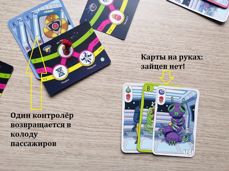 А вот если вы приехали на планету, где есть контролер, а в салоне у вас не оказалось зайцев, то контролер покидает планету и снова замешивается в колоду пассажиров. Его работа еще не выполнена!