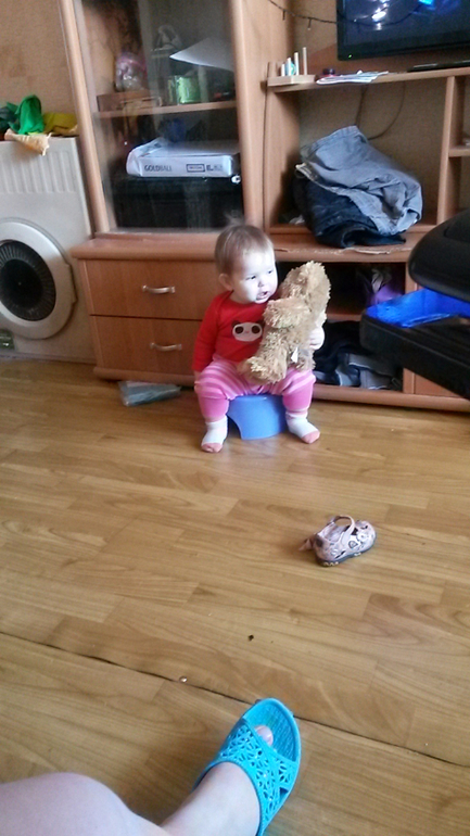 На горшок садится в одежде и садит игрушки, а я говорю пись пись и вижу как она начинает потуживатся)) Но никто не учил ее это делать. У нас горшок для анализов, и то я сажаю ее сонную себе на ручки, а горшок держу между своих ног, но Ладуня и сама допетрила что к чему. Подожду еще чуток и начну приучать к горшку основательней.