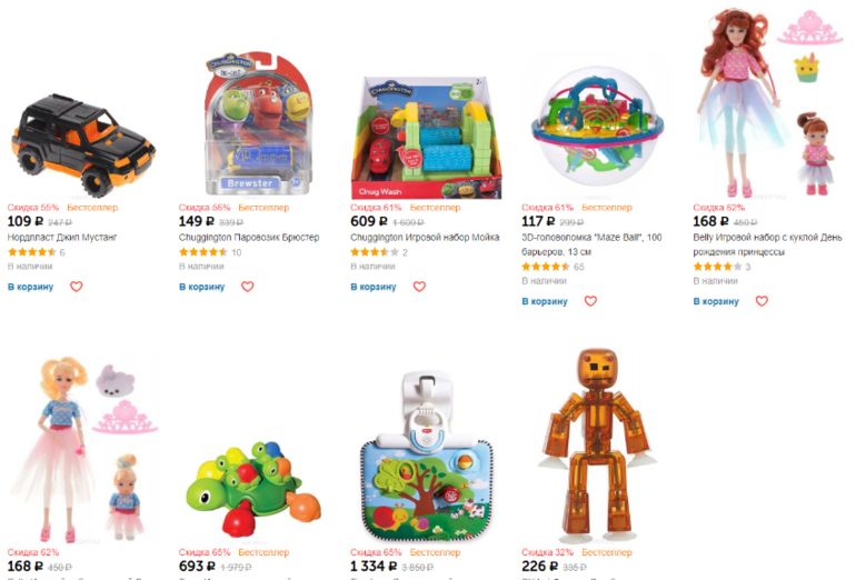 Скидки на игрушки до 78% , еще можно уменьшить цену баллами. Выбор огромный.