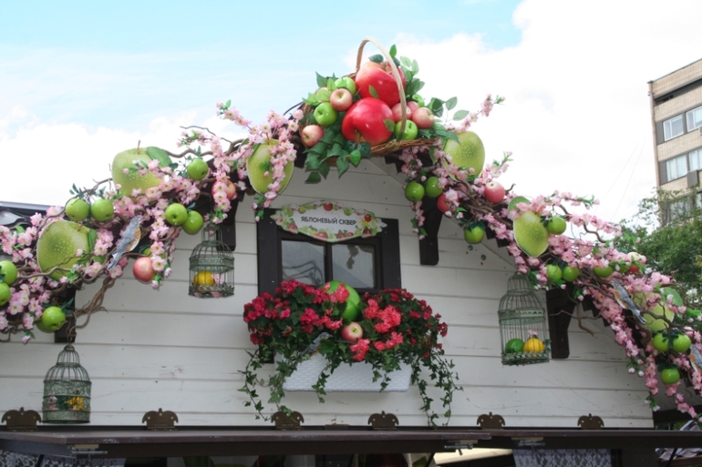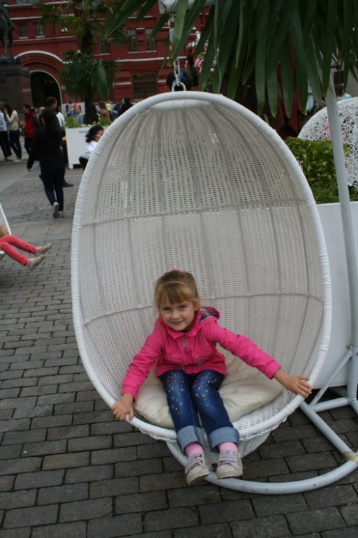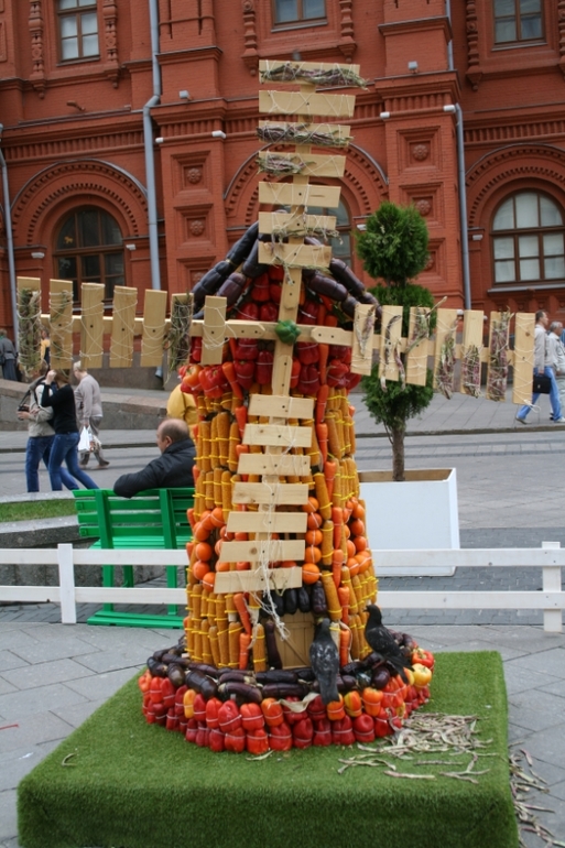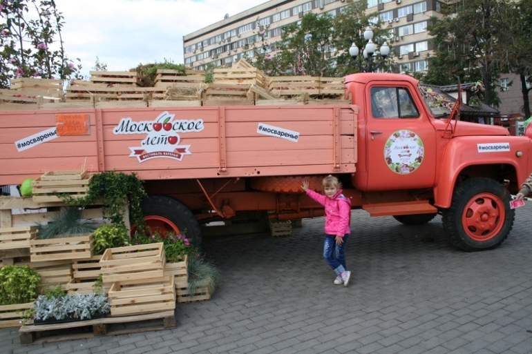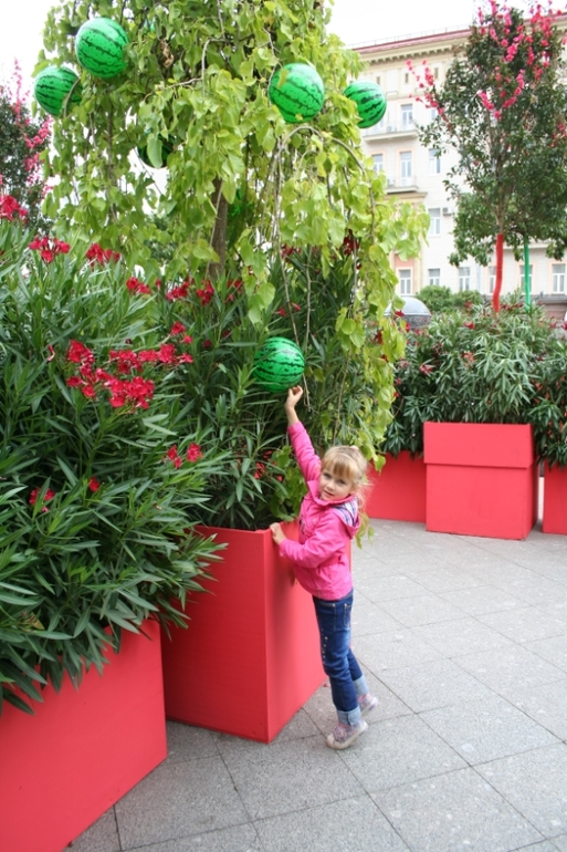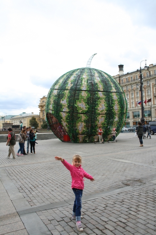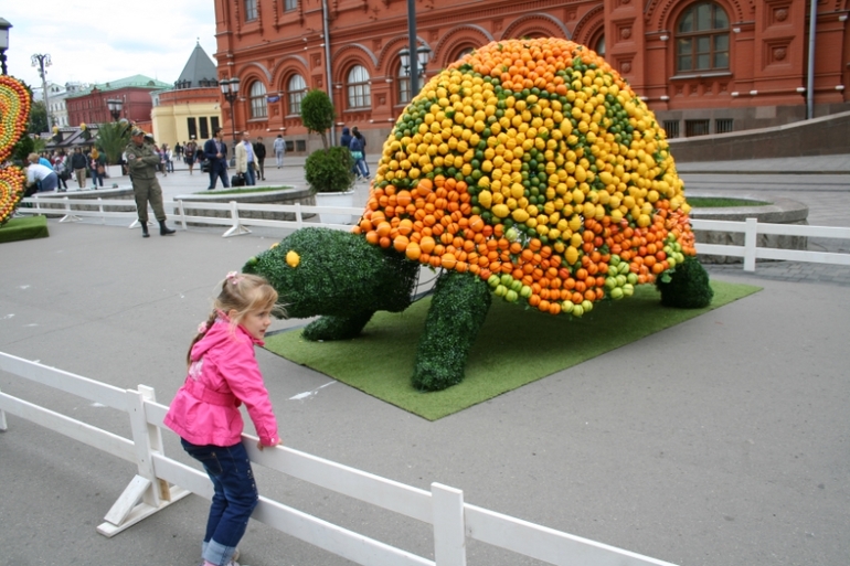 Мои дети и их досугНа даче скучно, сын в лагере. Решили мы с дочкой в Москву выбраться на праздник Мосваренье 2015. Погулять, посмотреть на клумбы / фруктовые композиции.