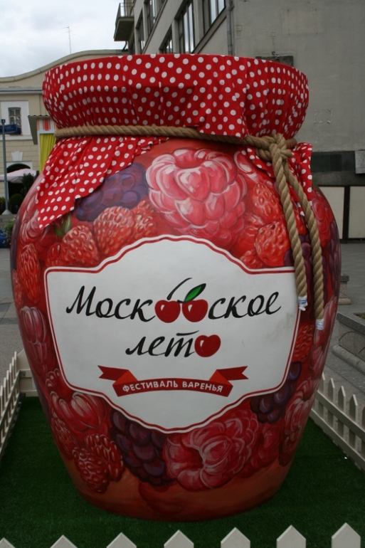Вообще ни о чем. Банка с вареньем, грузовик с коробами, фонтан. Палатки с яблоками.