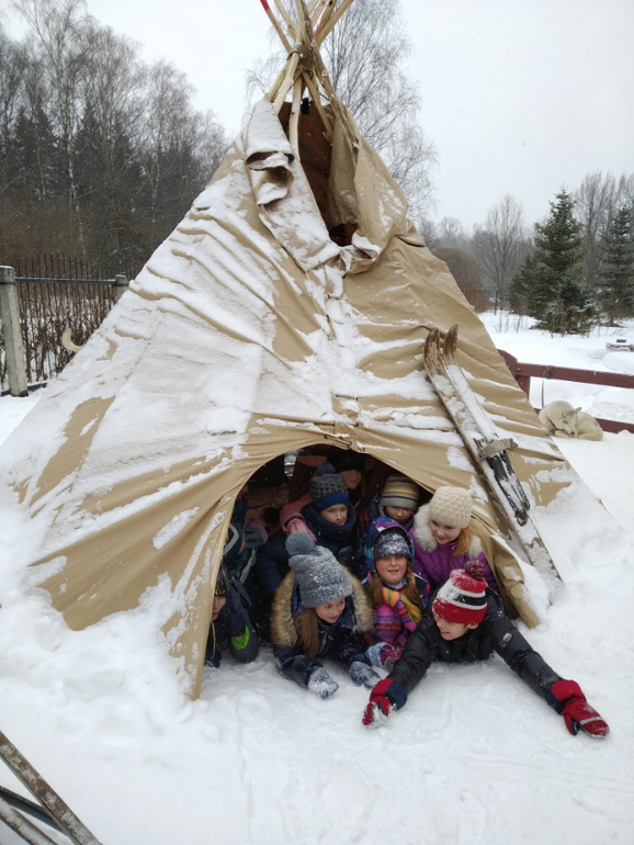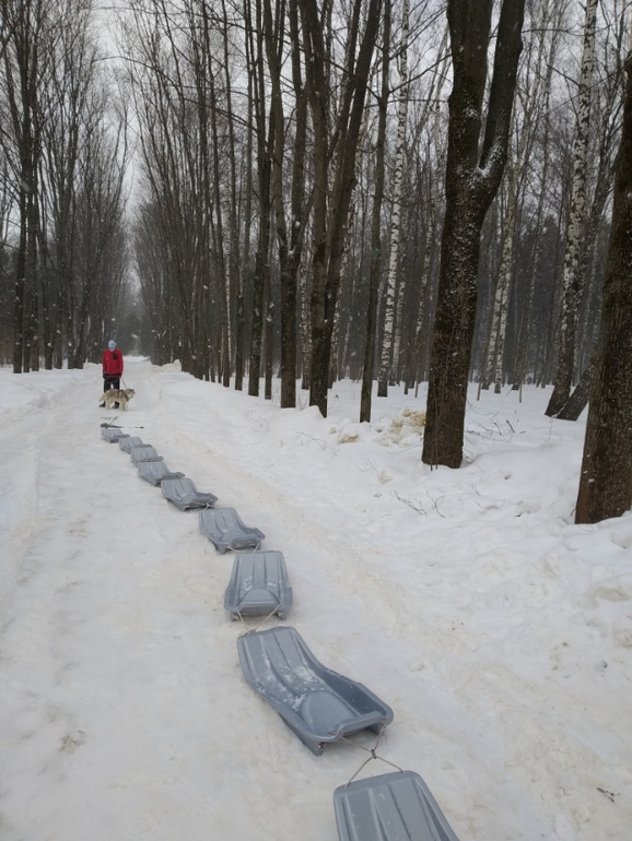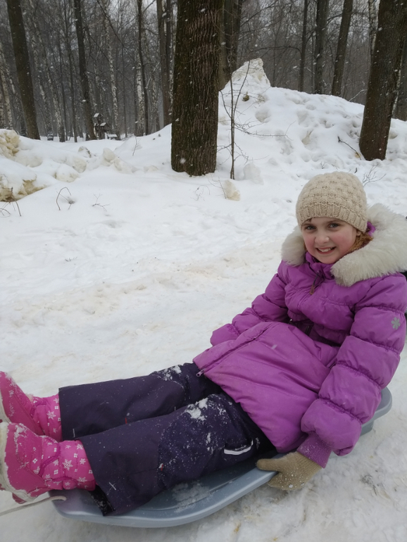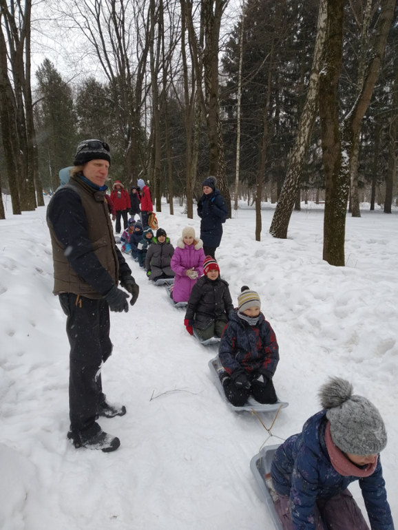 Все очень активно. Дети перемещались на ледянках (мини саночках).