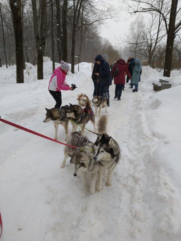 Сейчас они уезжают отдыхать. Но к майским праздникам опять вернуться. Есть вариант просто погладить собачек. А можно сходить с ними на прогулку "догтрекинг".