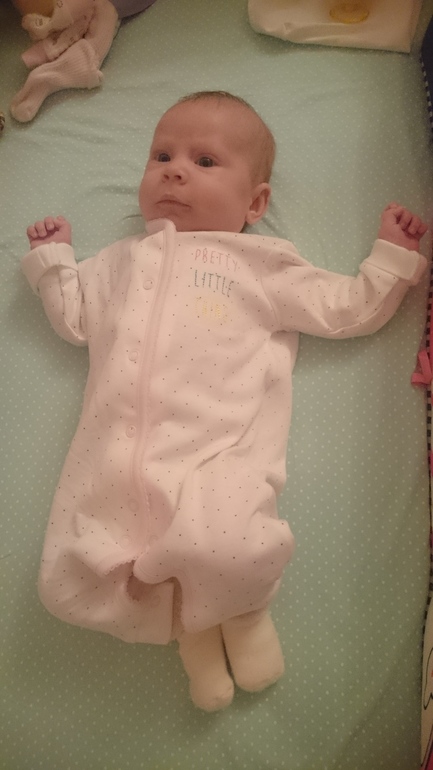 Из позитивного: уверенно держим голову на животе, болтаем с игрушками на мобиле (иногда и ночью О_о) и робко улыбается мне, папе и бабушке)