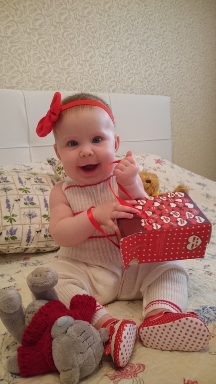 Научились садиться, не с четверенек,а через бочок, теперь не положить вообще на спину. Вылезло сразу 2 зуба и по ходу верхние готовятся. То ли вместе с простудой совпало, то ли на зубы, температурилт, сопли, кашель...короче, успели переболеть(((