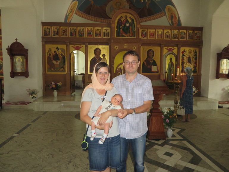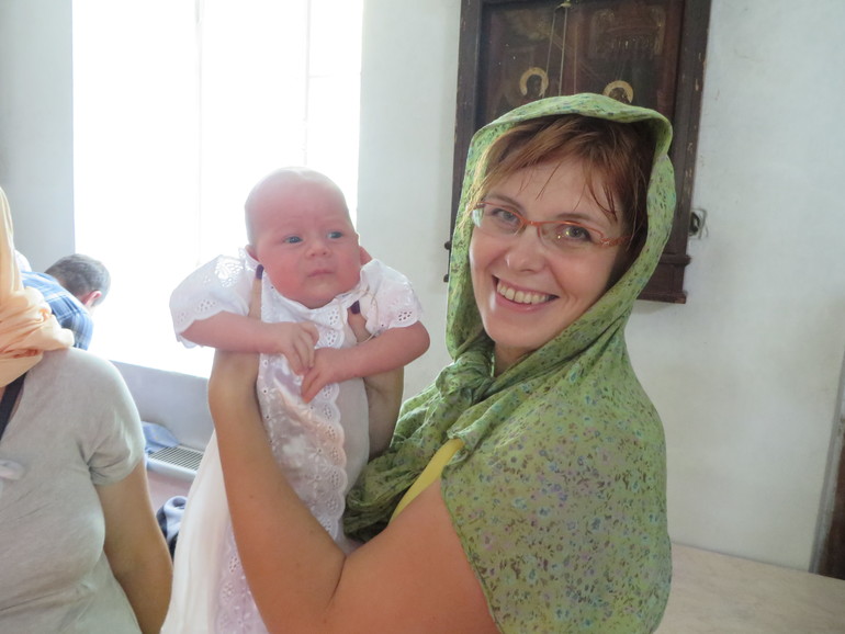 Сын был умницей, всю церемонию спал поочередно на руках у крестных, а когда проснулся, то просто глазел по сторонам и ни разу не заплакал.