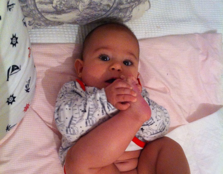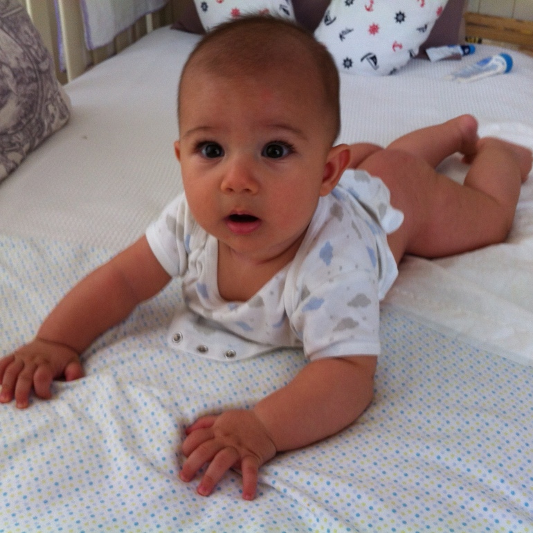 Вчера были у врача, Яман 8500 кг, 69 см. Кушает все так же только молочко, спит утром около 30-и мин вечером так же, днем около часа, иногда 2 раза п 30 мин. Твердо стоит на ножках с поддержкой, очень хочет сесть, но спинка пока не готова, тест не проходит. Ночью спит хорошо, вчера первый раз проснулся за ночь всего один раз, надеюсь, так будет всегда. Нашел ножки при каждой влзможности тащит в рот. Обожает все синего и голубого цвета, ползает по-пластунски. Любит играть с зеркалом. Мой масик-Ямасик)))) обожаю его))))))
