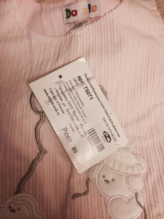Продам вельветовый Комбинезон для девочки р.80, мы переросли и не успели поносить ! Абсолютно новый с биркой!