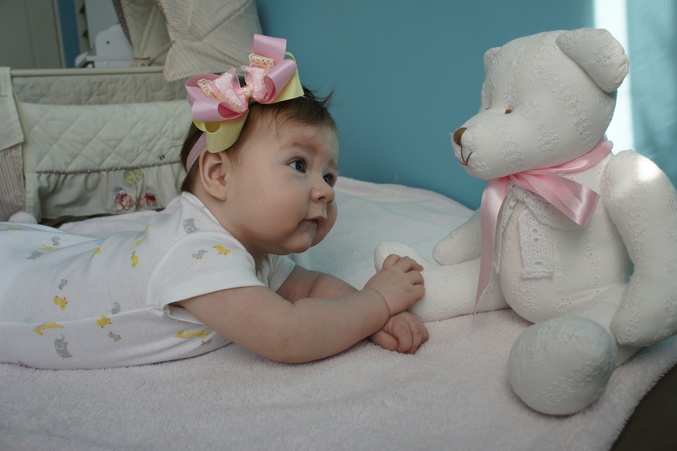 наш календарь развитияТакая большая уже Элинка у нас! Сама сидит уже) Ползает как угодно, только не вперёд). Оставишь её на коврике, приходишь через пару минут, а она уже в другой стороне тапки грызёт))) Хохочет постоянно))) Тянет ручки, чтобы её взяли... Любит внимание и движуху... Стесняшка))) Смущается часто и прячется от незнакомых... Такая хитрюжка у нас растёт!!!