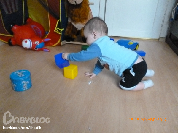 Игрухи: любит машинки, мячи, кубики ставить друг на друга(большие), книги( разбросать их).