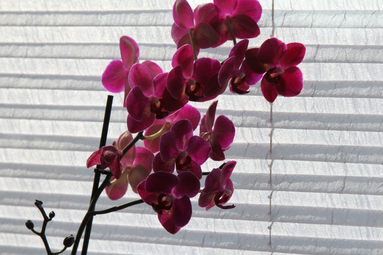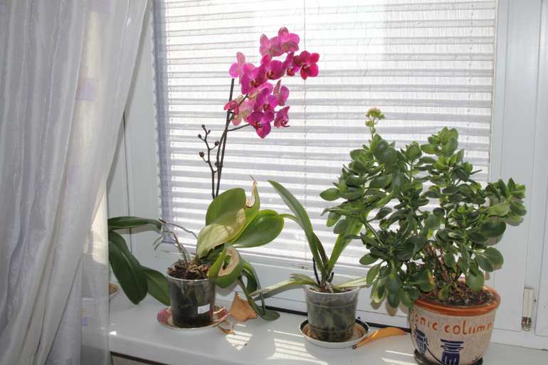 Вот не пойму я ее, я в них вообще не разбираюсь. Она стояла подальше от окна года 3-4, и не цвела, ( в комнате всегда много солнца) Весной я ее переставила на окно, при этом закрыла шторки плиссе, чтобы рассеять свет. так она зараза цветет во всю, но при этом листики помирают. Может она просто скидывает листики на время цветения?