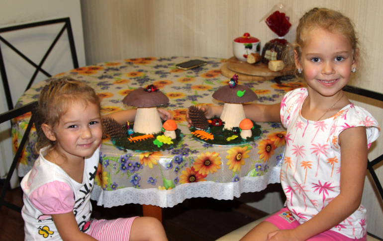 Наши поделкиПосле "легкой" поделки в виде аппликации и "сложной" поделки в виде платья из кленовых листьев, решили сделать "среднюю" поделку, задействовав папу))