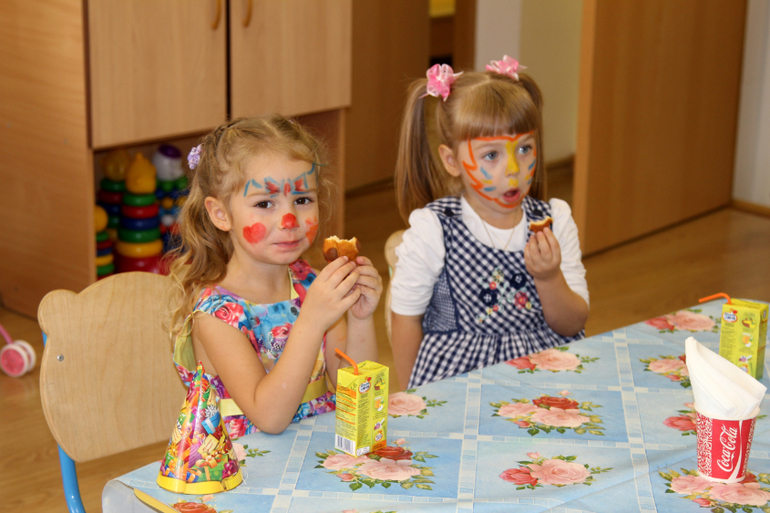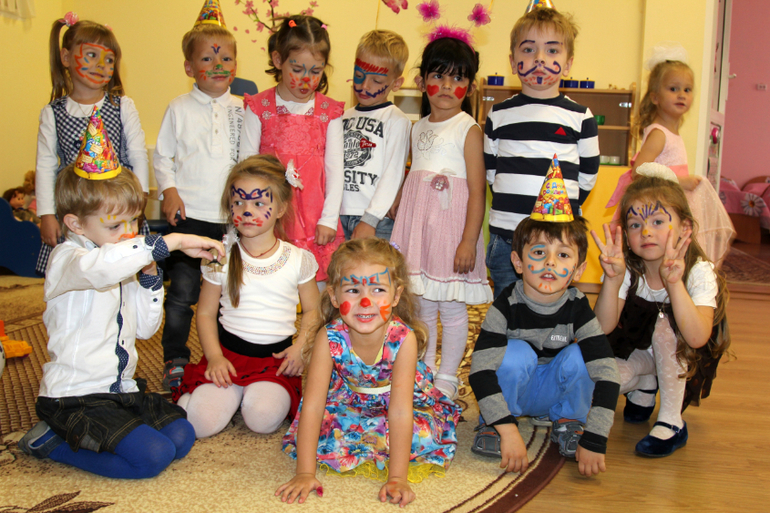 У Майи в группе потом мы устроили продолжение праздника, вкусняшки, танцы и немного рисовалки на лицах