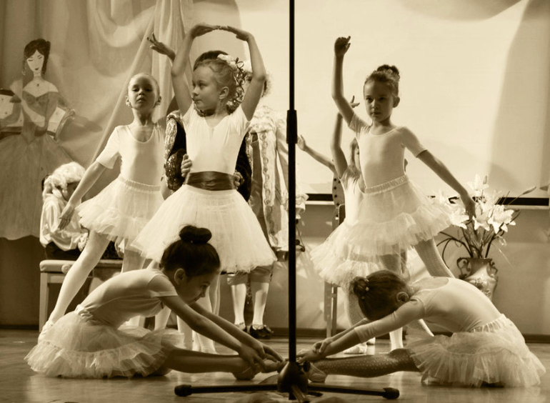 В этот раз дети нашего корпуса, и Даша тоже, выступили балеринами, и в конце проекта все дети дружно пели песню о мире и детском счастье.