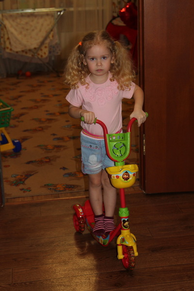 Всю эту неделю она ходила до вечера, спит в саду, кушать стала сама, ложкой и вилкой. Кашу не ест, ест в обед суп. Сегодня на ужин макароны поклевала. Фрукты ест каждый день-это она любит))) Очень ей нравятся занятия по английскому языку.