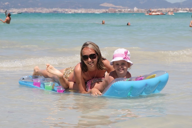 Волны были все время, первое время дети боялись, но потом мы их переносили через волны и они отлично плавали на кругах.