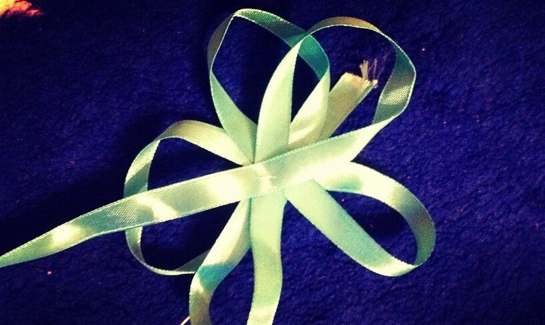 мой большой бант был из широкой атласной ленты, но дома оказалась только узенькая. делала все на скорую руку просто для примера, поэтому так не аккуратно.