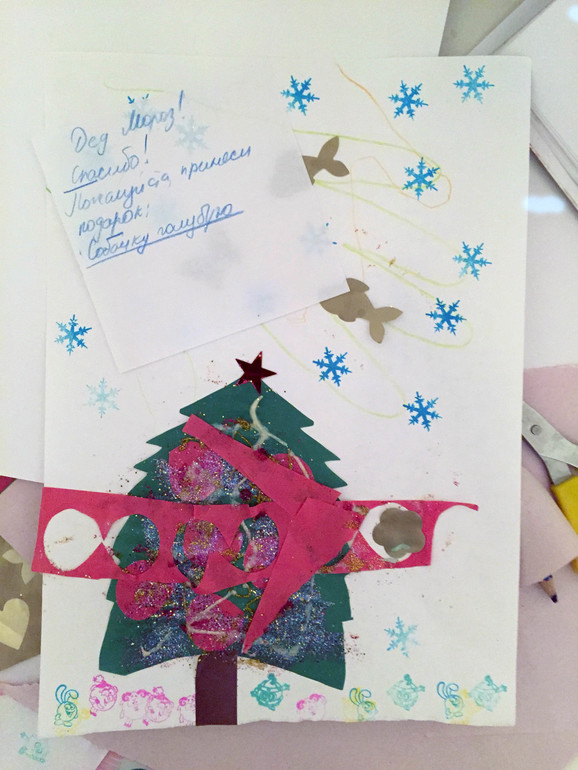 Вечером сделать поделку - открытка Деду Морозу в сапожок. Положить и загадать желание. Утром Дед Мороз заберет открытку и принесет подарок.
