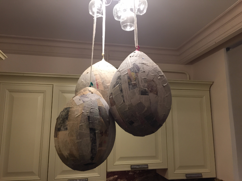 Пиньяты елочные игрушки (попробовать сделать на детской площадке) с Софиными друзьями. Пиньяты делали сами с Софой по принципу папье маше, пропорции клейстера 1:1 мука:вода. Накладывать на надутый шарик только один слой за раз, следующий только после полного просыхания предыдущего. Итак 5 слоев. После сдуваем шарик и урашаем салфетками, упаковочной бумагой и чем фантазия скажет.