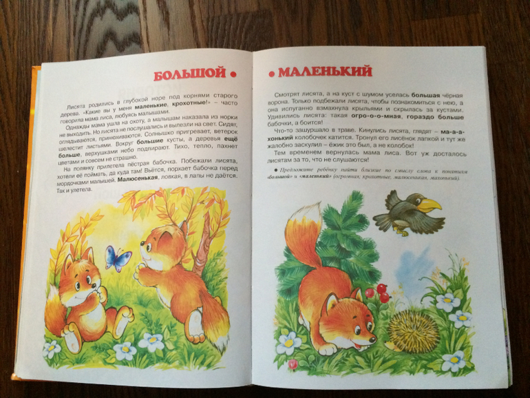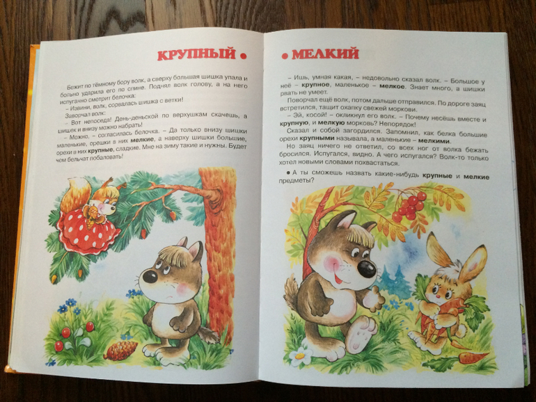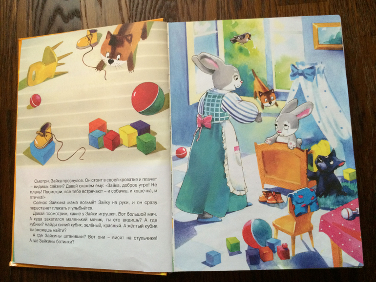 Какие то мы начали читать с года, какие то с 2-х лет, а какие то пошли с 2,5. Начнем пожалуй с этой. В рекомендациях написано, что книга рассчитана от года до четырех лет. Она достаточно большая и с обычными листами, поэтому немного уже порвана, т.к. читаем часто (до дыр)). Очень поучительная книга. Многому учит ребенка в форме рассказов и ненавязчиво.