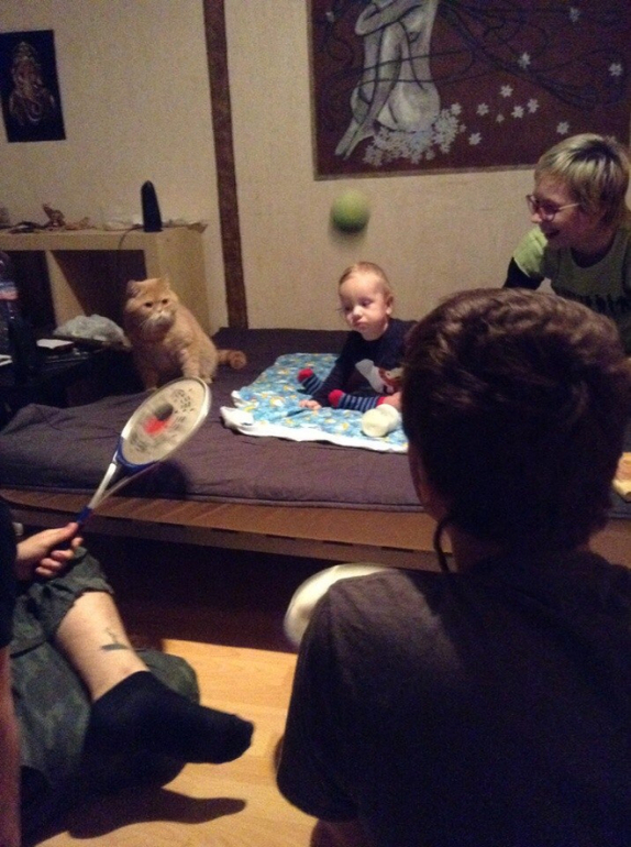 4) умеем одновременно пить одной рукой и держать игрушку другой