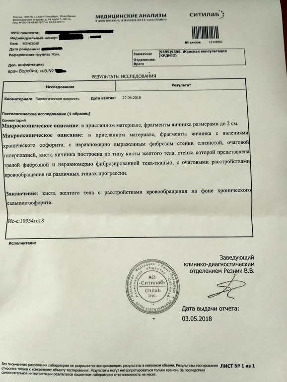 Хочу малышаПри проведении лапароскопии взяли кусочек яичника на исследование, результат был готов через 21 день. И вот что мне написали: