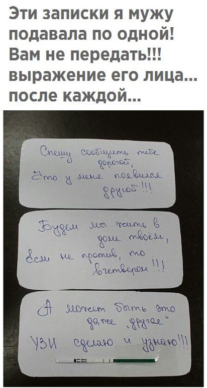 Цветочек Аленький 8 лет Оригинально! Посмотрите еще 20 записей на эту тему Отменить Ответить Anastasia очень оригинально и забавно!)поздравляю вас! 07.09.2017 Ответить Александра поздравляю!!! Порадовали и мужа и нас!!! 07.09.2017 Ответить Цветочек Аленький Это не моё))) я в интернете нашла) 07.09.2017 Ответить Александра Все равно прикольно!!! 07.09.2017 Ответить Хочется острого до трясучки! Девочки, посоветуйте, что посмотреть с мужем перед сном. Что бы и ему понравилось понравилось. Он л Чаты Беременных Выберите чат: Январята-2026 Февралята-2026 Мартята-2026 Апрелята-2026 Майчата-2026 Июнята-2026 Июлята-2026 Августята-2026