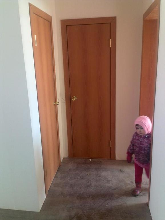 если приглядеться, то видно что все плитки разные по оттенкам. Смутило еще и что фартук только на одной стене, а мойка в углу, и розетка для плиты на соседней стене. Где логика? Не понятно. Фартук точно нужно будет переделывать. Как следствие обои тоже. Сразу про обои - они во всей квартире одинаковые! Светло кремовые, почсти белые. И в детской и в туалете и в зале. Вообще везде! Это нам так "повезло", у соседей в трешке 3 вида. Отдельно про цветовые решения - двери оранжево-коричневые, ламинат серо-коричневый, а плинтуса просто коричневые. У соседей ламинат кеоричневый, а двери розоватые. Подбирали слепые? Улучшенная отделка млин!