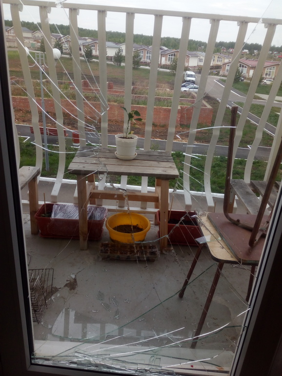 Вышла на балкон, дверь сквозняком развернулась и ручка "заглючила" в положении открыто, а дверь не открывается. Стала давить бедром и стекло разлетелось.