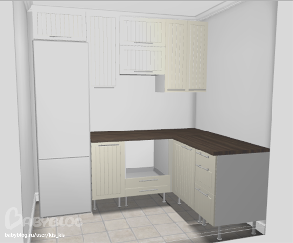 В данном проекте возможны только 2 изменения: может поменяться нижний шкаф на 40 см по бОльшей стене (план - это выкатная секция, может поменяться на обычный с 3 ящиками, пока думаю, какой мне больше нужен: 2 одинаковых и вместительных, или разные?) и шкафы над вятяжкой (сейчас 2 одинкаовых маленьких, а может появится распашной шкаф высотой 70см с 2 дверцами, кстати, возможно ли такое?)