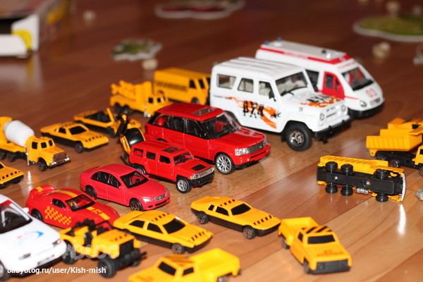 Купила в Ашане сыну набор машинок (все те, что жёлтые). В наборе штук тридцать, наверное, плюс два вертолёта (разные, кстати), дорожные рабочие со знаками и ограждениями. Очень удобно изучать нашему автофанату на примере этих игрушек все модели. Уже есть любимцы и отверженные, повторяет названия - "Зип" (джип), "пика" (пикап), "тейе" (трейлер), "экваква" (экскаватор)., "виу-виу" (скорая помощь :)).