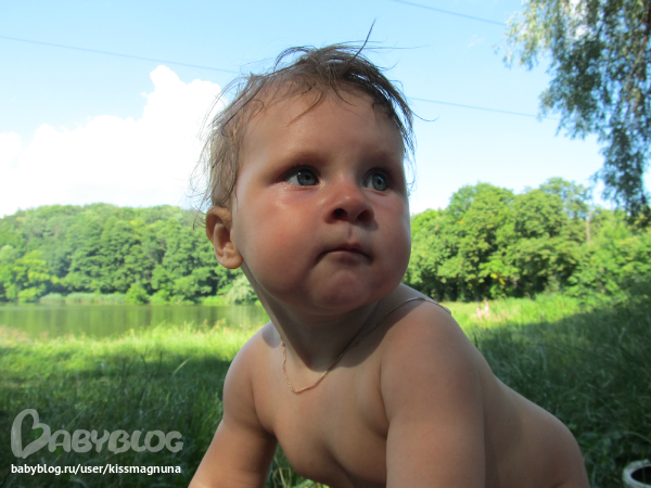 Сегодня утром начали говорить па-па, иногда -ма-па-па (наверное, чтобы мне было не обидно)... Еще спали всего 2 раза, но зато по 2,5 часа - прогресс правда подкачивать вначале пришлось... не помню такого вообще.. А еще мы ходили в лес на озеро, помочили ножки, побультыхались и попринимали воздушные ванны... И встали у коляски, едва придерживаясь рукой...И немного фоток