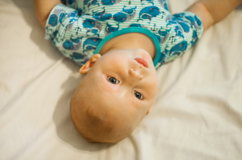Здравствуйте,нам уже 1,6 года,умеем переворачиваться, агукать,стараемся работать ручками и брать игрушки...маленький добрячок.