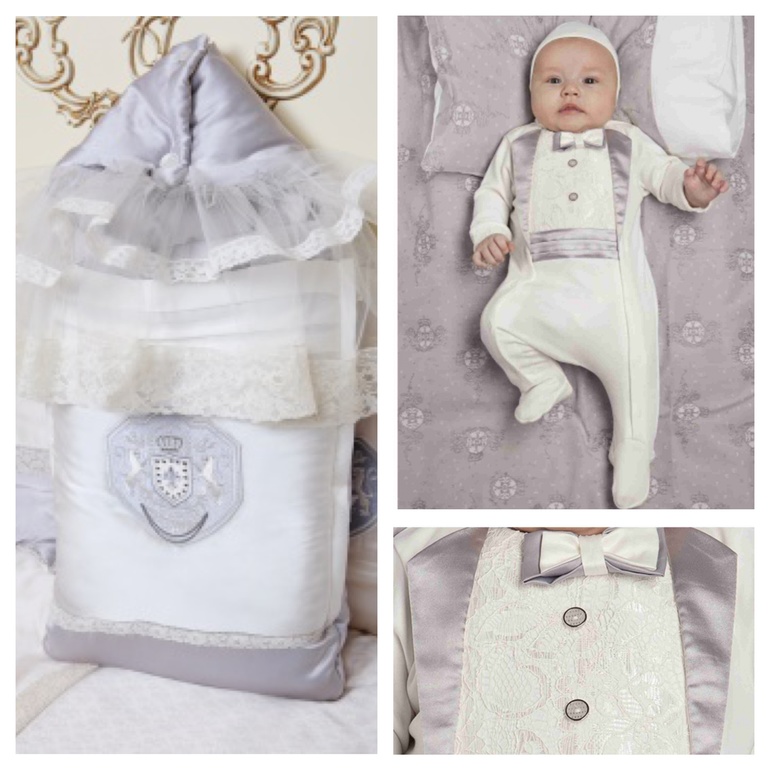 Сейчас есть возможность сделать комплект с большой скидкой: конверт, комбинезон, чепчик - 5 500 руб.