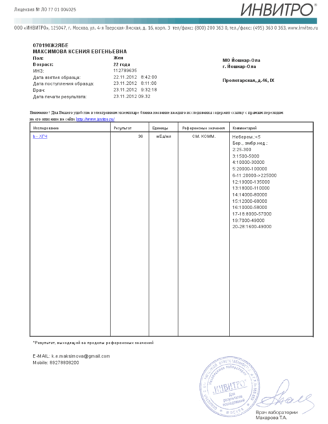 (ХГЧ сдала вчера,сегодня рез-т будет)