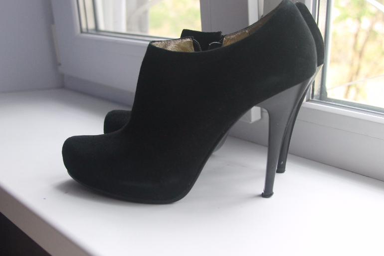 Мама продает ботильоны, т.к. после операции на косточку она не может носить такие каблуки. Размер 40 (полноразмерные, стелька- 27,1 см). Высота каблука- 10 см, но со встроенной платформой. То есть не чувствуется вообще. Были куплены 2 года назад за 3550 руб. С тех пор лежат. Разбирала она свои вещи и попросила выставить на продажу.