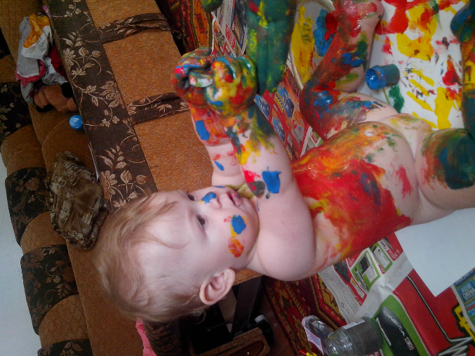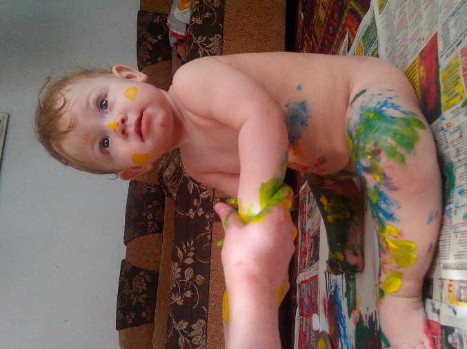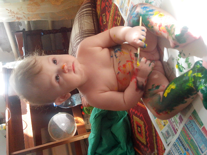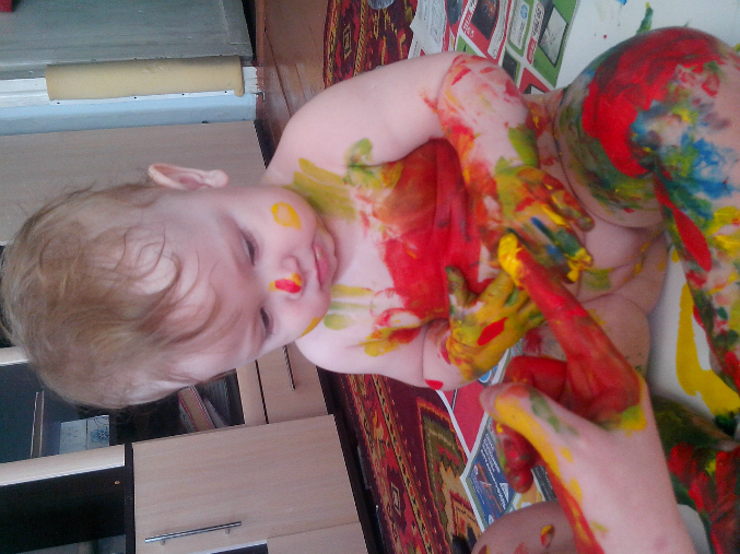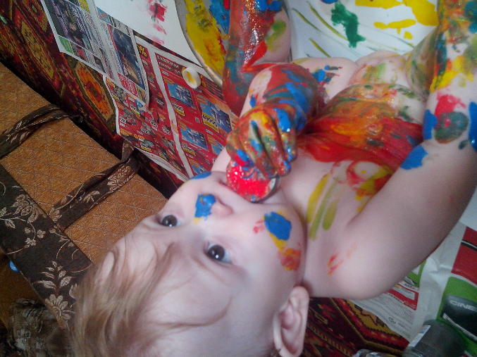 единственное что мы попробоали на зубок это крышечка от краски!!!но быстро её отдали маме!!!!а так мы очень довольны,на ватмане рисовать не понравились так что занимались бодиартом свом и маминым!!!!)))