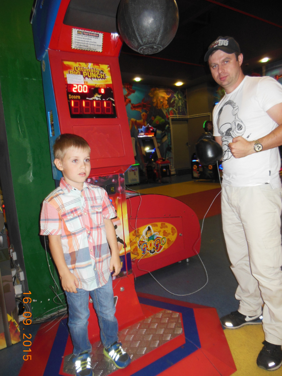 Отмечали праздник мы семьей в игровой комнате, Максим поиграл там на разных автоматах, потом дома полакомились пиццей и тортом вместе с нашими друзьями. В подарок Максим получил свою заветную большую черепашку-ниндзя, с которой теперь не расстается, и ест, и спит, и купается с ней)))
